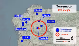 El terremoto, con epicentro a 12 kilómetros de profundidad, se ha sentido en varias poblaciones de la zona, como la localidad de Taboada, donde en una escala de 1 a 10, se ha percibido con un nivel cuatro.