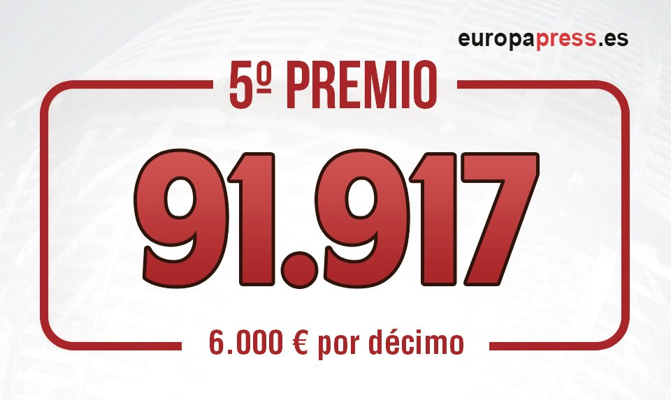 LEE AQUÍ TODA LA INFORMACIÓN. Sale otro quinto premio: el 91.917, dotado con 60.000 euros a la serie