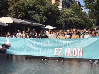 Encabezando la manifestación, se ha podido ver una pancarta con el lema de la movilización 'Toros no, no en San Sebastián ni en ningún sitio'. A la finalización de la misma, su portavoz Aitor Marín, ha lamentado que durante la semana de fiestas habrá toros en la capital guipuzcoana, pese a que "una encuesta realizada el pasado año por el Ayuntamiento" refleja que "solo el 18 por ciento de los vecinos están a favor de los toros".