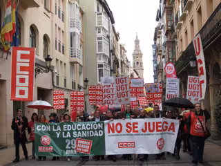 Cerca de 3.500 personas han recorrido las calles de Logroño durante este domingo para participar en la manifestación convocada por UGT y CC.OO. bajo el lema 'Con la educación y la salud no se juega' algo que, como ha indicado el secretario general de UGT, Javier Granda, "es lo que está haciendo el Gobierno tratando de recortar en los derechos fundamentales de los ciudadanos".