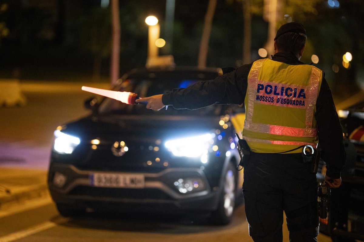 Un agente de Seguridad Ciudadana y del Área Regional de Recursos Operativos (Arro) de los Mossos d'Esquadra durante un control policial estático en el barrio de La Mina en la ciudad de Sant Adrià de Besòs, la noche del 11 al 12 de abril de 2024, en Sant A - Lorena Sopêna - Europa Press