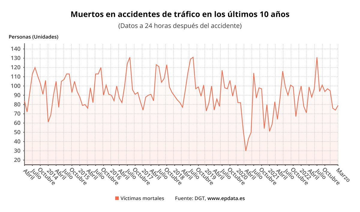 Este aumento en la siniestralidad se ha producido en un contexto en el que también se han registrado un mayor número de desplazamientos (+12,3%); en concreto en todo el mes se han registrado 35,5 millones de movimientos de largo recorrido, frente a los 31,6 millones de marzo de 2022.