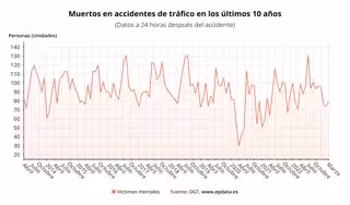 Teniendo en cuenta el medio de desplazamiento, este mes han aumentado en siete los fallecidos vulnerables y han descendido en ocho los fallecidos en turismo con respecto al mismo mes de 2022.