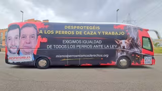 Un autobús rotulado de gran impacto estará presente durante la protesta con los rostros de los ministros del ramo, Pablo Bustinduy y Luis Planas, y el lema: "Desprotegéis a los perros de caza y trabajo. Exigimos igualdad de todos los perros ante la ley". Este autobús lleva circulando por Madrid desde el 8 de abril y lo estará haciendo hasta entonces, "visibilizando la campaña en distintos puntos clave de la ciudad".