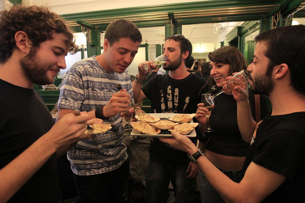 Entre las 12.30 y las 14.30 horas los asistentes han disfrutado de una copa de cava y un aperitivo en los nueve bares de la Plaza Mayor que han participado en la Vendimia 2011. Algunas de las tapas a degustar han sido jamón, callos, lacón, tortilla española, vieira, paella, ensaladilla, queso, además de diversos tipos de canapés.