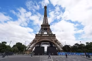 23 July 2024, France, Paris: The Olympic rings can be seen on the Eiffel Tower ahead of Paris 2024 Olympic Games. Photo: Martin Rickett/PA Wire/dpa - Martin Rickett/PA Wire/dpa
