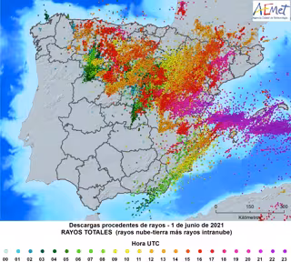 Esta cifra está aún lejos de otros registros históricos realizados por la AEMET, que ha contabilizado las descargas eléctricas nube-tierra registradas de los últimos años en Península e Islas Baleares en el estudio 'Climatología de descargas eléctricas y de días de tormenta en España' y que sitúa el 14 de septiembre de 2009 como el de mayor actividad, ya que se registraron un total de 104.989 descargas.