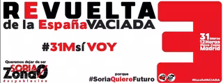 Más de 80 plataformas participarán en la manifestación 'Revuelta de la España Vaciada' convocada este domingo en la Plaza de Colón de Madrid por 'Soria Ya' y 'Teruel Existe', para exigir "igualdad, vertebración, equilibrio territorial y medidas contra la despoblación".