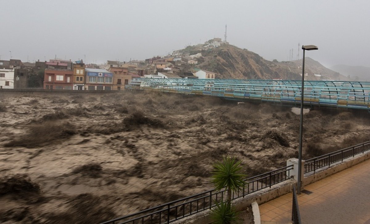 La precipitaciones se concentraron fundamentalmente en el entorno de los ríos Guadalentín y Mula y desencadenaron unos caudales punta de avenida de 4.500 m3/seg en Valdeinfierno (Lorca) y unos 2.500 m3/seg en la rambla de Nogalte (Puerto Lumbreras).