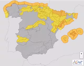 Por fenómenos costeros, en Asturias, Lugo y A Coruña (Galicia) se esperan olas de hasta 7 metros en el litoral occidental, al igual que en Guipúzcoa, Vizcaya (País Vasco), Mallorca e Ibiza y Formentera (Baleares), además de Cantabria donde podrían alcanzar los 8 metros. El aviso es amarillo en Girona y Tarragona (Cataluña) y Castellón (C.Valenciana). Finalmente, Álava (País Vasco), Burgos (CyL) y Cantabria tendrán también avisos por lluvias.