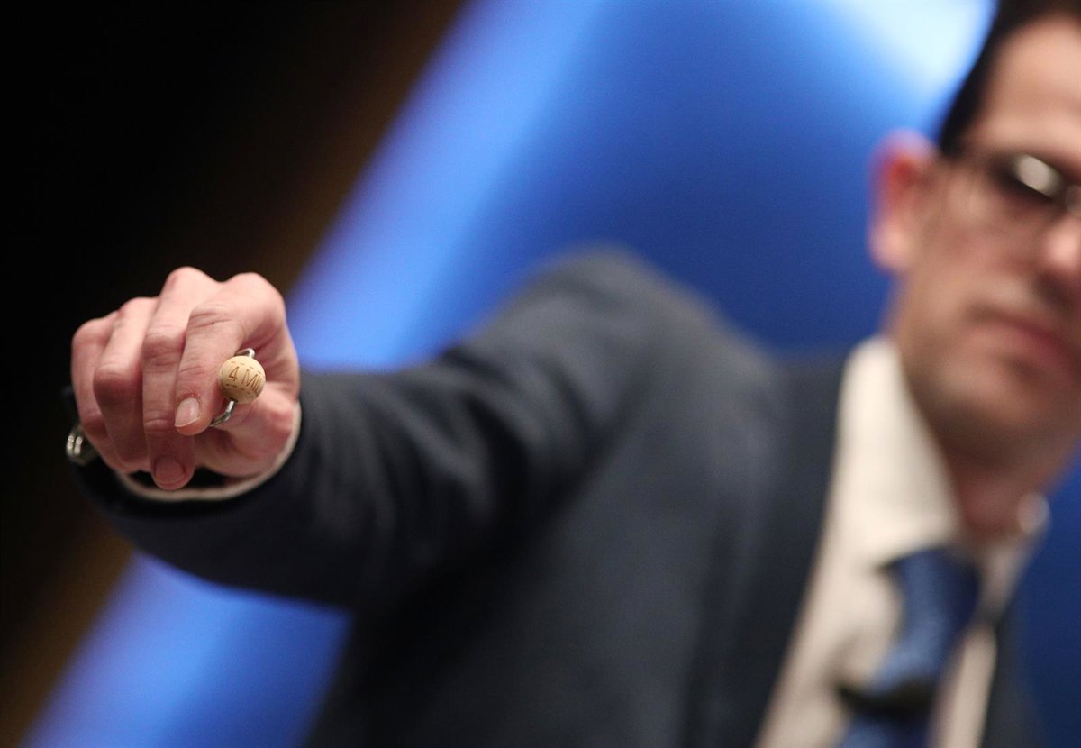 La bola correspondiente al primer premio de la lotería relativo a 4 millones de euros a la serie durante la celebración del Sorteo Extraordinario de la Lotería de Navidad 2019 en el Teatro Real de Madrid (España), a 22 de diciembre de 2019. - Eduardo Parra - Europa Press