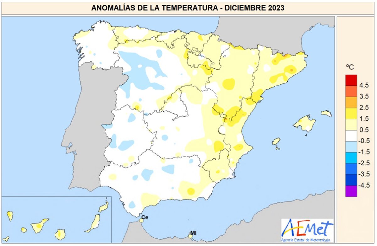 El mes de diciembre de 2023 ha sido 0,8C más cálido que la media y el sexto más seco del siglo XXI - AEMET
