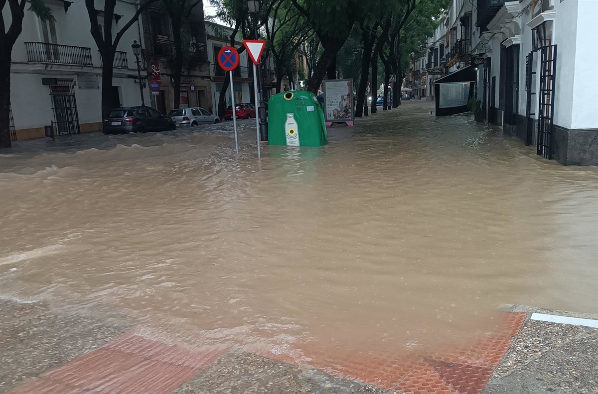 Imagen de archivo de la calle Porvera en Jerez con agua acumulada por las lluvias de la Dana que atraviesa la provincia. - Europa Press
