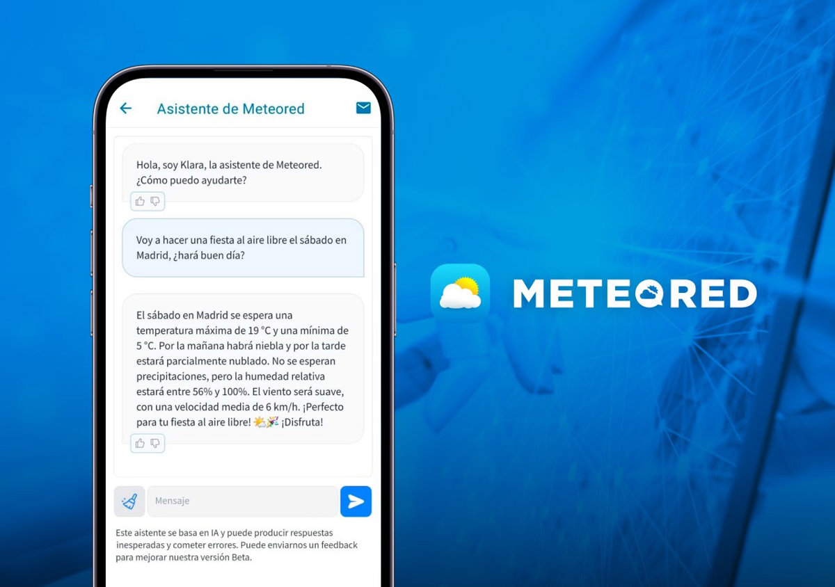 "Nuestro objetivo es aprovechar el potencial de la IA generativa para subir un escalón en la interacción con el usuario, respondiendo preguntas complejas para las que es clave tener en cuenta factores atmosféricos, climáticos y ambientales", ha asegurado Javier López, CEO de Meteored. "La meteorología es crucial en la vida cotidiana y también en la reducción de riesgos, y estamos convencidos de que la integración de la IA en nuestro producto a través de Klara, puede contribuir a ayudar a las personas a tomar mejores decisiones", ha añadido.