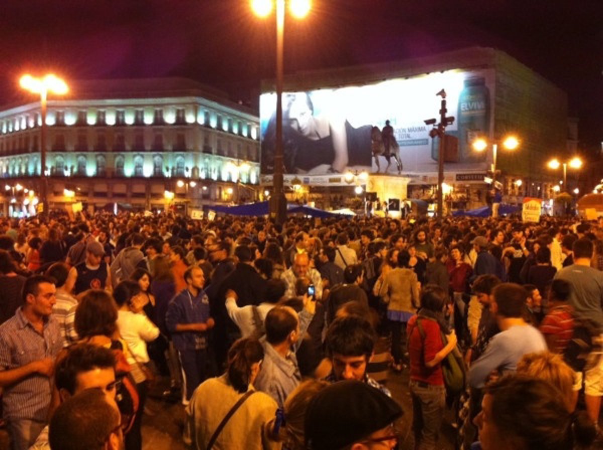 Al menos 3.000 ciudadanos movidos por su indignación ante la clase política y empresarial se han vuelto a concentrar este martes en la madrileña Puerta del Sol para reclamar un cambio político y social. La histórica plaza madrileña esta custodiada por más una docena de patrullas de policías antidisturbios, aunque la protesta, que en todo momento ha sido calificada como "pacífica y honesta", se ha desarrollado sin incidentes.