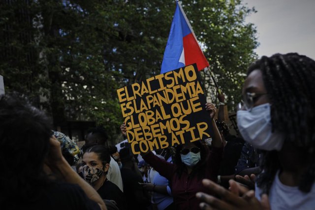 Al grito de 'No justice, no peace' ('sin justicia, no hay paz') y 'Black lives matter' ('las vidas negras importan'), la protesta, que ha discurrido de manera totalmente pacífica, ha seguido así los pasos de las concentraciones multitudinarias en Estados Unidos en memoria de Floyd. 'George Floyd, di su nombre', han instado los asistentes, junto a consignas contra el racismo y contra la Ley de Extranjería española.