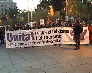 Unas mil personas han clamado este sábado en Barcelona "contra el fascismo y el racismo" de organizaciones como Plataforma per Cataluña (PxC).