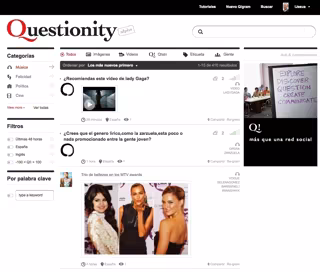 En Questionity se puede encontrar información de cualquier clase gracias a su buscador y a la clasificación de sus contenidos en múltiples categorías y etiquetas, consiguiendo generar micro comunidades entorno a intereses comunes de los usuarios.