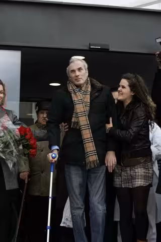 Sus allegados, encabezados por su esposa, Isabel Cepeda, le recibieron por todo lo alto en una fiesta organizada a la salida del centro hospitalario. A su salida se soltaron 256 globos blancos por los días que ha estado ingresado y 56 globos rojos por los años que cumple hoy mismo.