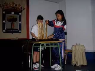Desde dos meses antes, todos estos niños ensayan de lunes a jueves durante 20 minutos con una tabla que tiene ya más de 100 años de antigüedad. El objetivo es asegurarse de que la voz les va a aguantar durante todo el sorteo y que el tono de cada pareja --el que canta número y el que canta premio-- sean homogéneos y vayan a la par. "Nos cuesta más trabajo con las niñas pequeñas", reconoce Vázquez.