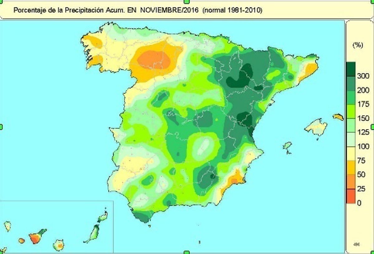 El mes de noviembre de 2016 ha tenido un carácter normal o ligeramente frío, con una temperatura media en el conjunto de España de 10,8 grados centígrados, lo que supone un 0,1 grados centígrados por debajo de la media y ha llovido un 33 por cien más de lo habitual, por lo que la treintena ha sido más húmeda de lo normal.