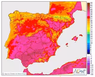 Una tercera ola de calor comenzará este lunes con temperaturas significativamente altas en el interior de la mitad sur peninsular y Valle del Ebro. 18 provincias tendrán activada la alerta por altas temperaturas: Cádiz, Córdoba, Granada, Huelva, Jaén, Málaga, Sevilla, Zaragoza, Albacete, Ciudad Real, Cuenca, Guadalajara, Toledo, Ávila, Lleida, Madrid, Badajoz y Mallorca; todas en alerta amarilla (riesgo) a excepción de Córdoba y Jaén, con alerta naranja (riesgo importante).