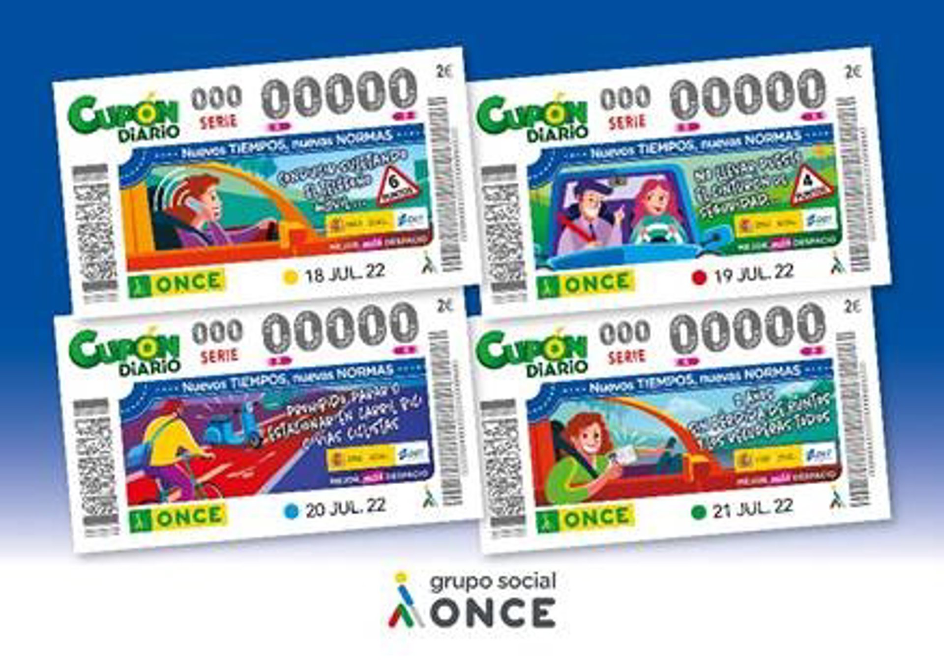 'Nuevos tiempos, nuevas normas' es el título de la serie de cupones, 20 millones en total, que la ONCE dedica a la Dirección General de Tráfico (DGT) para ayudar a divulgar las novedades de la Ley de Tráfico, que entraron en vigor el pasado 21 de marzo.