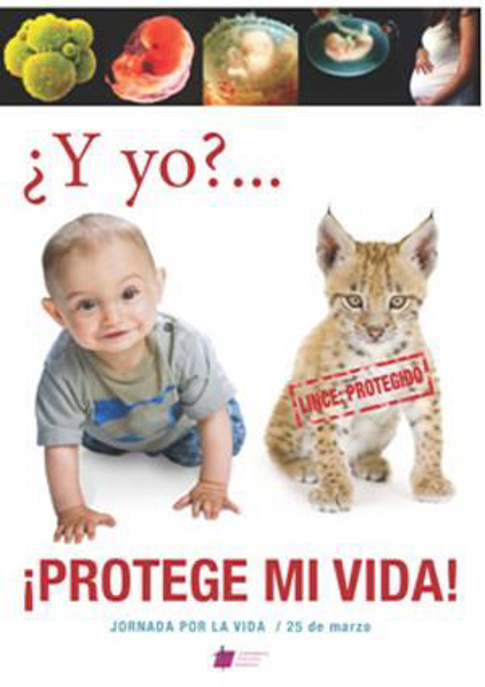 El proyecto tiene como protagonistas a un hombre y a un lince. Sobre el animal aparece el sello de protegido y sobre el niño la pregunta '¿y yo?. Sobre ambos hay una serie de imágenes en las que se muestran los diferentes estadios de un feto en gestación. En la parte inferior del cartel, el lema de la campaña.