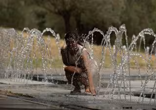 Una mujer se moja en los chorros de Madrid Río para aliviar la ola de calor. - Eduardo Parra - Europa Press