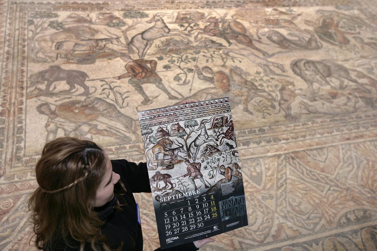 Los mosaicos de la villa romana de La Olmeda, ubicada en la localidad palentina de Pedrosa de la Vega, ilustran el calendario 2016 de historia de National Geographic, que comparte con otras "joyas" del arte como las Cuevas de Ajanta en la India o el gran Templo de Ramsés II bajo las arenas del desierto en Egipto.