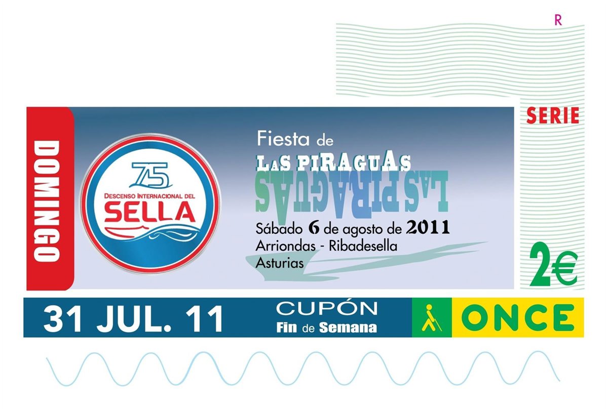 El cupón dedicado al 75 Descenso Internacional del Sella está ilustrado con el logotipo diseñado para la ocasión. Cinco millones de cupones llevarán la imagen del Descenso Internacional del Sella por toda España.