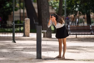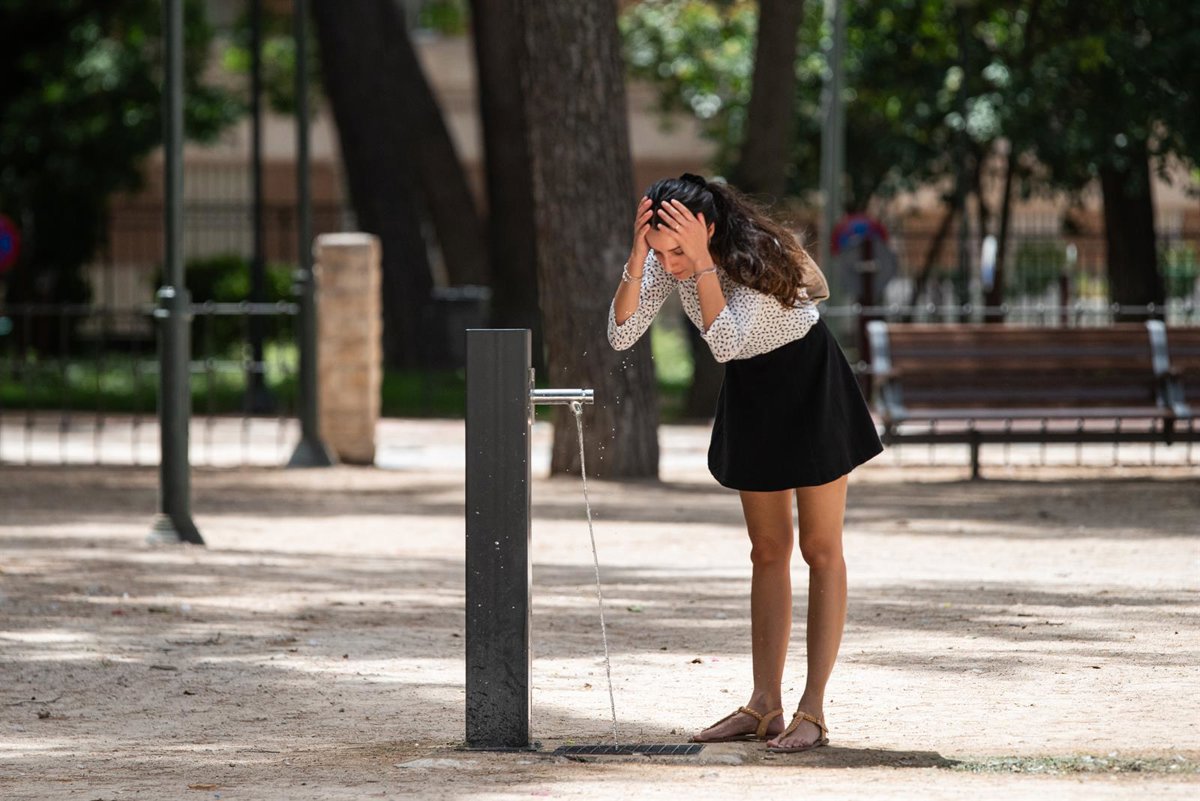 Una mujer se refresca en una fuente del parque Abelardo Sánchez, a 11 de julio de 2023, en Albacete, Castilla-La Mancha (España). - Víctor Fernández - Europa Press