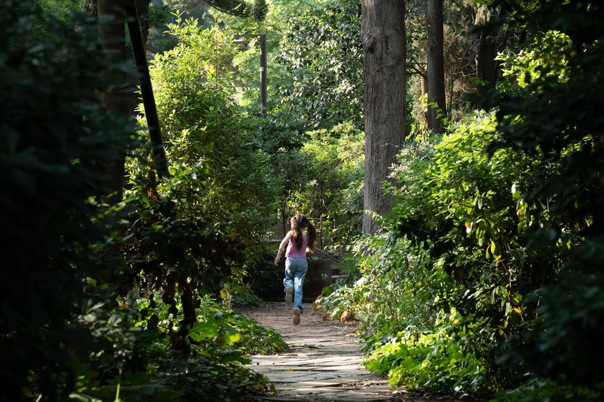 Una niña corre en un parque, a 5 de junio de 2025, en Barcelona, Catalunya (España). El pasado martes, 3 de junio, el Ayuntamiento de Barcelona, presentó los 46 nuevos equipamientos que cumplirán la función de refugio climático para combatir el calor este - David Zorrakino - Europa Press
