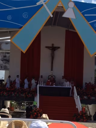 El avión ha llegado al aeropuerto internacional 'Frank País' de Holguín, donde ha sido recibido por el obispo de la ciudad, monseñor Emilio Aranguren. Posteriormente, se han trasladado en coche a la Plaza de la Revolución 'Calixto García Iñíguez' de esta ciudad donde ha presidido a partir de las 10.30 horas la Misa en memoria de San Mateo.