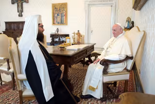 "El sufrimiento de muchas hermanas y hermanos perseguidos por razones de fe urge una acción unida", ha señalado Francisco ante el primado de la Iglesia Ortodoxa, elegido en 2014, que por primera vez realizó una peregrinación a Roma como Metropolita.