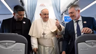 Mientras el avión sobrevolaba España, los periodistas españoles han preguntado al Papa si se podía "contar como visita papal", ya que Bergoglio ha recibido invitaciones pero todavía no ha visitado el país como Papa, a lo que ha respondido, entre risas: "Puede ser".