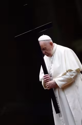 El Papa Francisco encabeza la procesión del Vía Crucis en una Plaza de San Pedro vacía durante las celebraciones del Viernes Santo, este viernes 2 de abril - Evandro Inetti/ZUMA Wire/dpa
