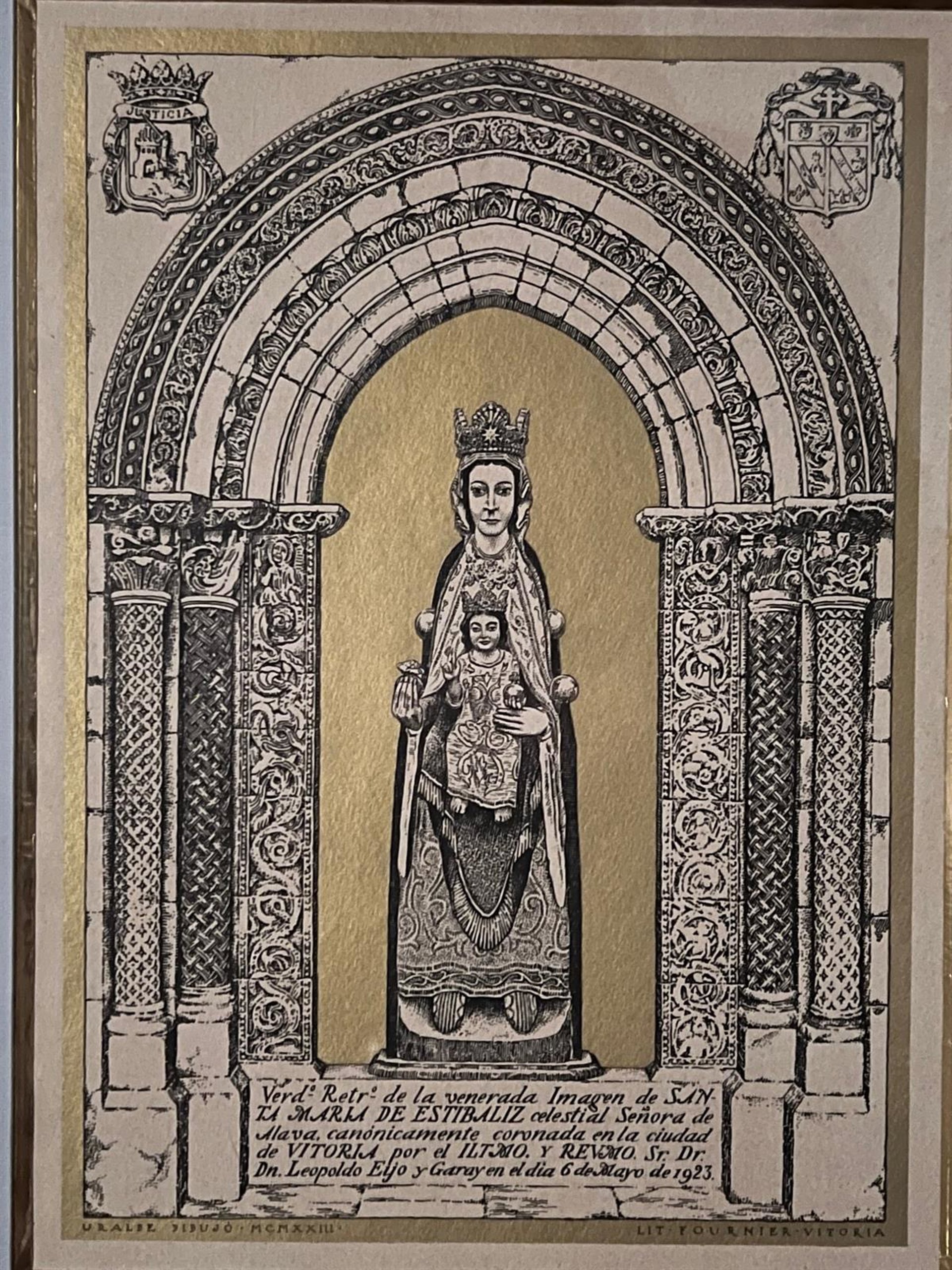 En mayo de 1923, Vitoria y toda Álava prepararon la celebración de la coronación de la Virgen de Estíbaliz. Como muestra del gran fervor popular, la capital acogió una multitudinaria ceremonia en la Plaza de la Provincia, sobre los escalones del palacio de la diputación, donde el entonces obispo de Vitoria, Leopoldo Elijo y Garay, colocó sobre la imagen de la Virgen la corona que la acreditaba simbólicamente como Reina y Señora de los alaveses.