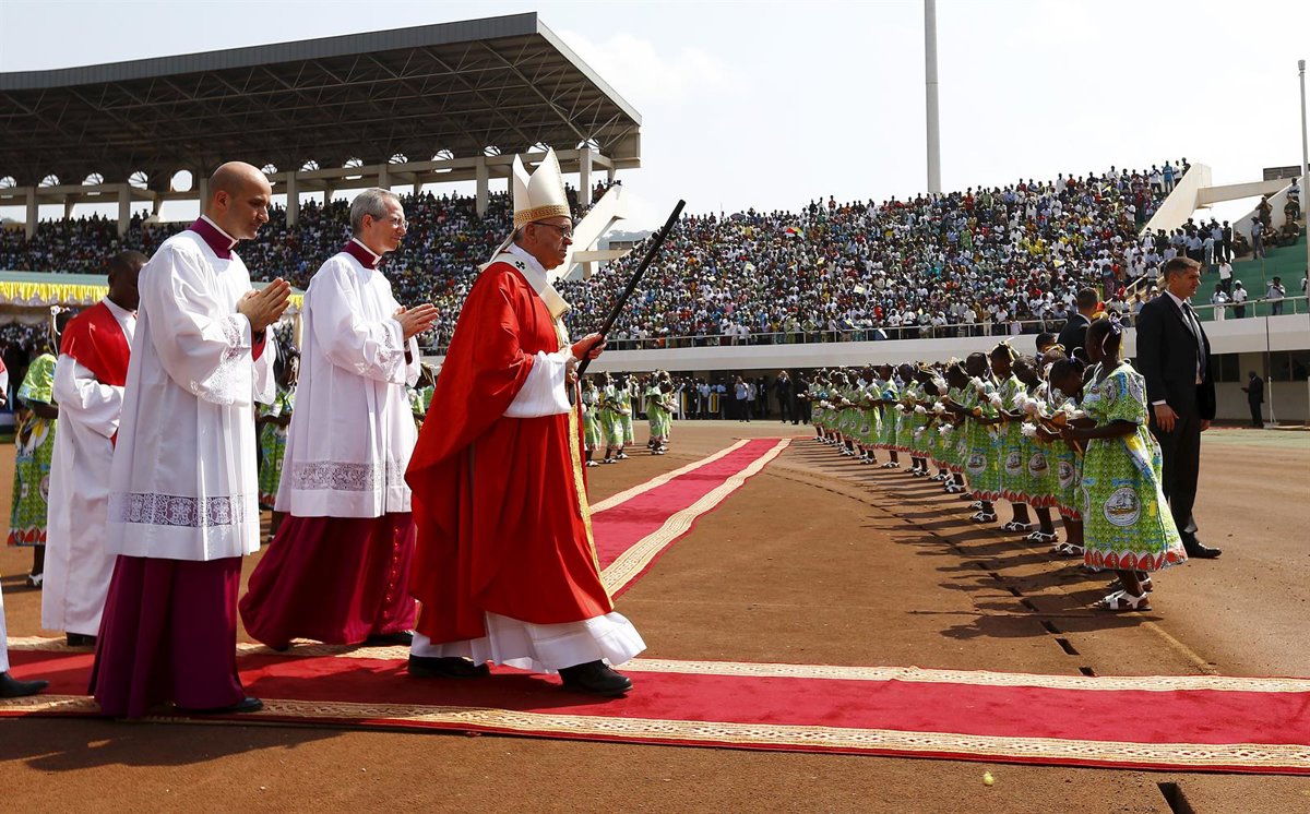 Durante una Misa en el Estadio Deportivo Barthélémy Boganda de Bangui, a la que han asistido miles de fieles, el Pontífice ha instado al país a abrir "una nueva etapa en su historia". "Cada uno de ustedes está llamado a ser, con la perseverancia de su fe y de su compromiso misionero, artífice de la renovación humana y espiritual de su país", ha afirmado.