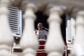06 February 2022, Vatican, Vatican City: Pope Francis delivers the Sunday Angelus prayer from the window of the Apostolic Palace overlooking St. Peter's Square in Vatican City. Photo: Evandro Inetti/ZUMA Press Wire/dpa - Evandro Inetti/ZUMA Press Wire/d / DPA