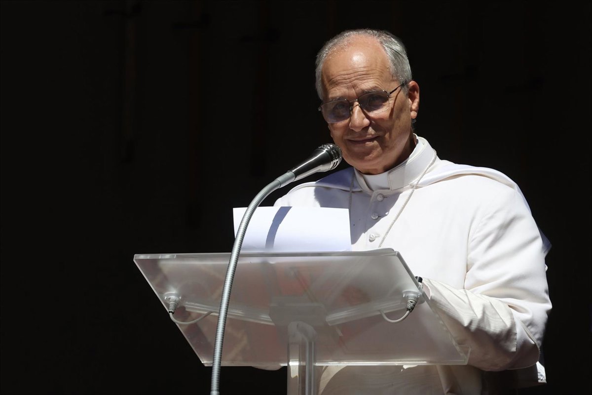 20 July 2025, Vatican, Castelgandolfo: Pope Leo XIV during the Angelus in Piazza della Libertà in Castelgandolfo in front of thousands of faithful. Photo: Marco Iacobucci/IPA via ZUMA Press/dpa - Marco Iacobucci/IPA via ZUMA Pre / DPA