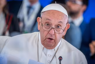 14 June 2024, Italy, Bari: Pope Francis speaks during the G7 leaders' summit at the Borgo Egnazia resort. Photo: Michael Kappeler/dpa - Michael Kappeler/dpa