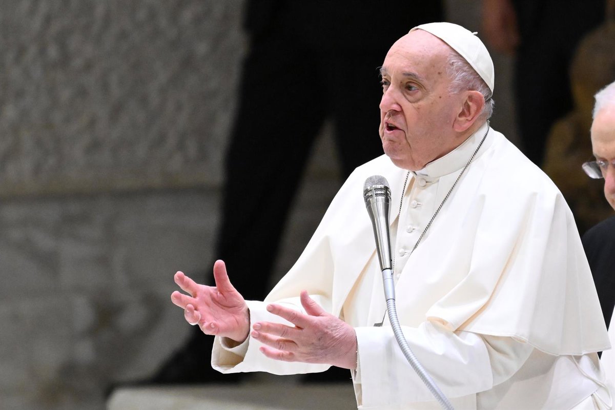 27 March 2024, Vatican, Vatican City: Pope Francis speaks during the General Weekly Audience at the Paul VI Audience Hall. Photo: Domenico Cippitelli/LPS via ZUMA Press Wire/dpa - Domenico Cippitelli/LPS via ZUMA / DPA