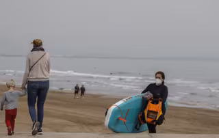 Archivo - Una mujer sale con mascarilla de la playa la Malvarrosa en Valencia, Comunidad Valenciana (España), a 1 de abril de 2021. Ayer, 31 de marzo entró en vigor el Proyecto de Ley de medidas urgentes de prevención, contención y coordinación para hac - ROBER SOLSONA - Europa Press - Archivo