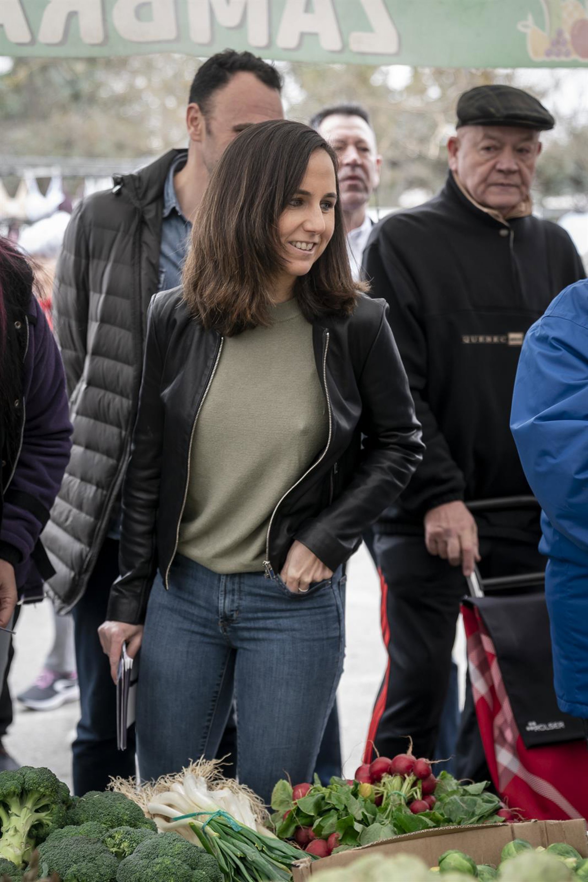 La secretaria general de Podemos y ministra de Derechos Sociales y Agenda 2030, Ione Belarra, visita el mercado del parque de Finca Liana en Móstoles, a 18 de febrero de 2023, en Móstoles, Madrid (España). - A. Pérez Meca - Europa Press