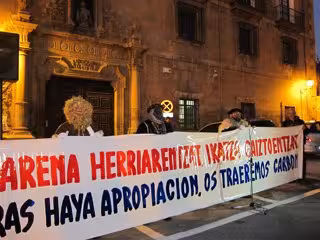 Bajo el lema 'Mientras haya apropiación os traeremos carbón. Herriarena herriarentzat, ikatza gaiztoentzat' (Lo del pueblo para el pueblo, carbón para los malos), alrededor de 200 personas se han dado cita frente al Arzobispado, portando velas y panderetas, para exigirle que "devuelva a los pueblos todos los bienes arrebatados". Entre los asistentes se encontraban, entre otros, el diputado de Amaiur por Navarra, Sabino Cuadra, y el parlamentario de Bildu Victor Rubio.