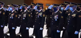 Varios policías nacionales, durante el acto del Día de la Policía Nacional, en Ifema, a 1 de octubre de 2021, en Madrid (España). Esta ceremonia incluye un homenaje a los caídos en acto de servicio y la imposición de condecoraciones al mérito policial - Marta Fernández Jara - Europa Press
