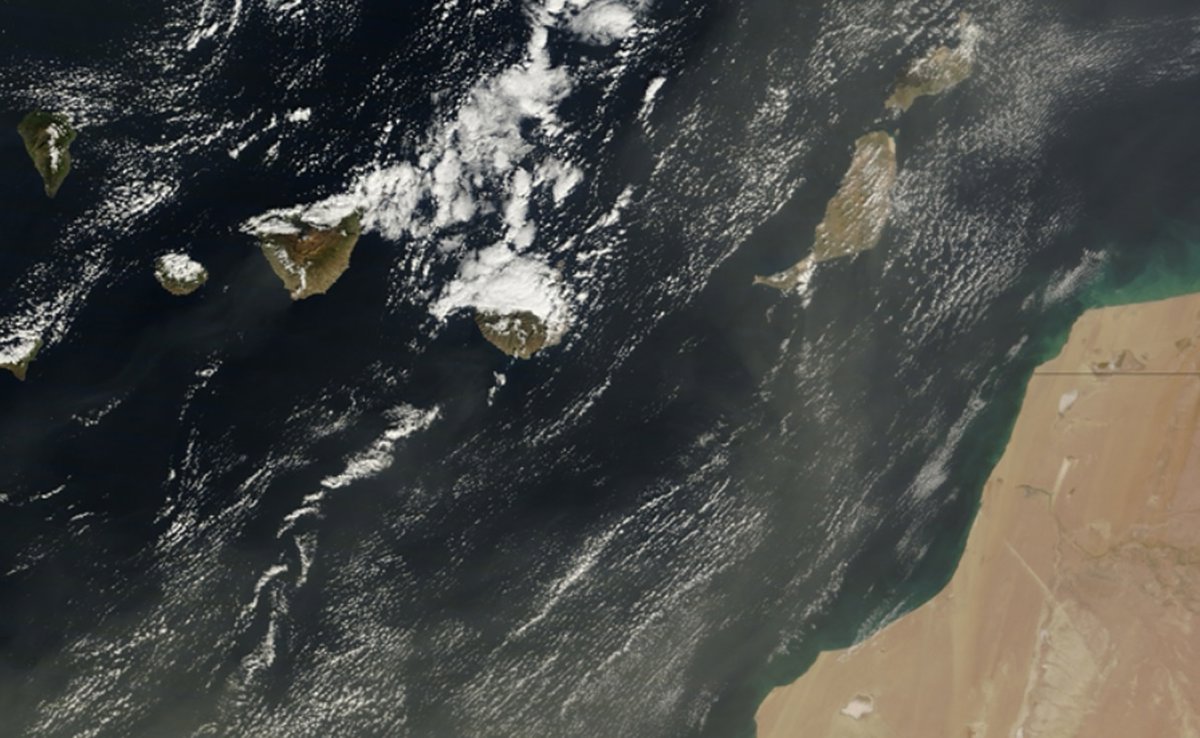 El Moderate Resolution Imaging Spectroradiometer (MODIS) en el satélite Terra de la NASA capturó esta imagen de color natural el 14 de enero de 2015, que muestra al archipiélago bajo el influjo del polvo sahariano.