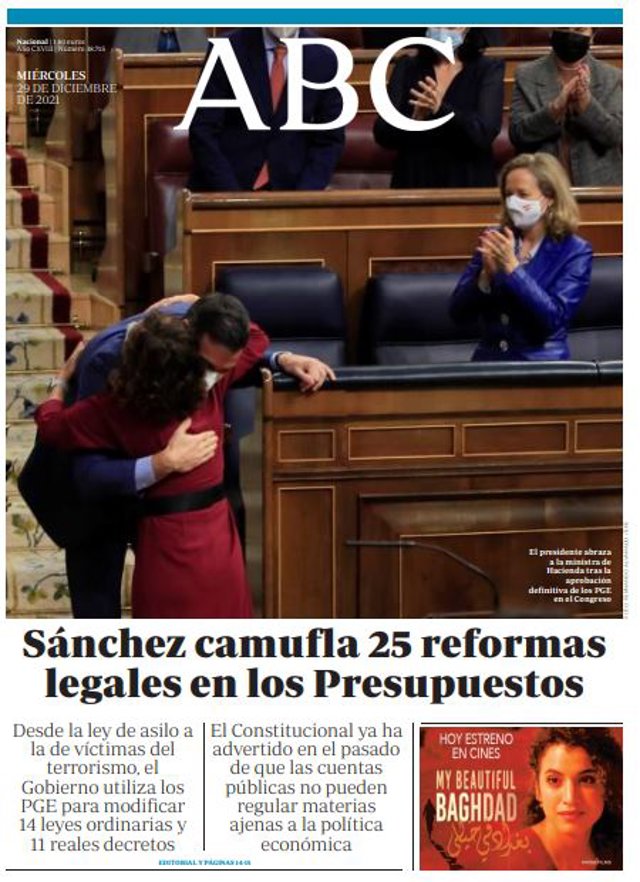 ABC: "Sánchez camufla 25 reformas legales en los Presupuestos".