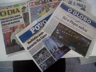 El diario 'O Estado de Sao Paulo', uno de los de mayor difusión en el país, también dedica amplio espacio en la portada al Santo Padre, bajo el titular: 'El Papa habla de incoherencias en la Iglesia y articula una reforma'. Según el diario, los cambios en la Curia se iniciarán al regreso del Papa a Roma y asegura que parte del tiempo en Río lo ha destinado el Santo Padre a reuniones con cardenales.